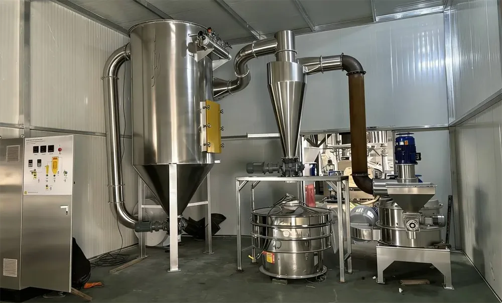 A2: Sitä voidaan säätää. Fruit Vegetable Ultra Fine Pulverizer on varustettu tarkkuusluokitusmekanismilla. Lajittelupyörän pyörimisnopeutta säätämällä jauheen hienoutta voidaan säätää joustavasti. Mitä suurempi pyörimisnopeus, sitä hienompaa jauhe; Samanaikaisesti eri verkkoverkon eritelmät voidaan vaihtaa vastaamaan erilaisia 80-600 meshin hienousvaatimuksia. Toiminta on yksinkertaista ja kätevää ilman ammattiapua.