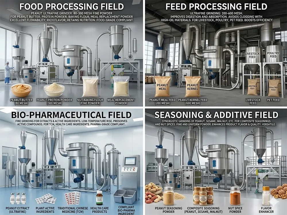 3. Biofarmaseuttinen kenttä: Soveltuu maapähkinäuutteiden ja kasviaktiivisten ainesosien hienomurskaamiseen, alhaisella lämpötilan nousulla murskausprosessin aikana, mikä ei vahingoita aktiivisia komponentteja. Se on ihanteellinen jauheen käsittelyyn sellaisissa skenaarioissa kuin perinteisen kiinalaisen lääketieteen keittopalat ja terveyslisäraaka-aineet täyttäen biolääketeollisuuden tiukat standardit. Hyödyntämällä Xingshengwein teknologista asiantuntemusta farmaseuttisissa laitteissa, se tarjoaa vaatimustenmukaisuustakuuta biolääkealan asiakkaille.