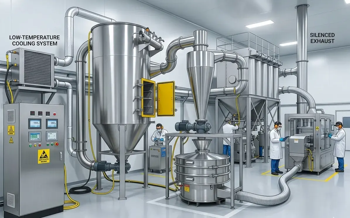 Yhä tiukentuvien maailmanlaajuisten ympäristömääräysten myötä Xingshengwei pysyy alan kehitystrendeissä ja integroi ympäristöturvallisuuskonseptit koko laitteiden tutkimus- ja kehitysprosessiin. Pesticide Superfine Pulverizerin suunnittelu on EPA-, CE- ja ISO 9001 -standardien mukainen ja täyttää täysin kotimaiset ja kansainväliset ympäristövaatimukset. Sen alipaineinen suljetun silmukan järjestelmä voi estää pölyn vuotamisen, suojella työntekijöiden terveyttä ja vähentää ympäristön saastumista; Laitteet on myös varustettu antistaattisella rakenteella, joka pystyy käsittelemään torjunta-aineen murskausprosessin aikana syntyvän staattisen sähkön, mikä varmistaa turvallisen toiminnan myös syttyvien tai myrkyllisten materiaalien kanssa. Lämpöherkille torjunta-aineille Xingshengwei tarjoaa myös valinnaisen matalan lämpötilan jäähdytysjärjestelmän aktiivisten ainesosien hajoamisen estämiseksi, mikä heijastaa täysin Xingshengwein palvelufilosofiaa "asiakas ensin, turvallisuus etusijalla".