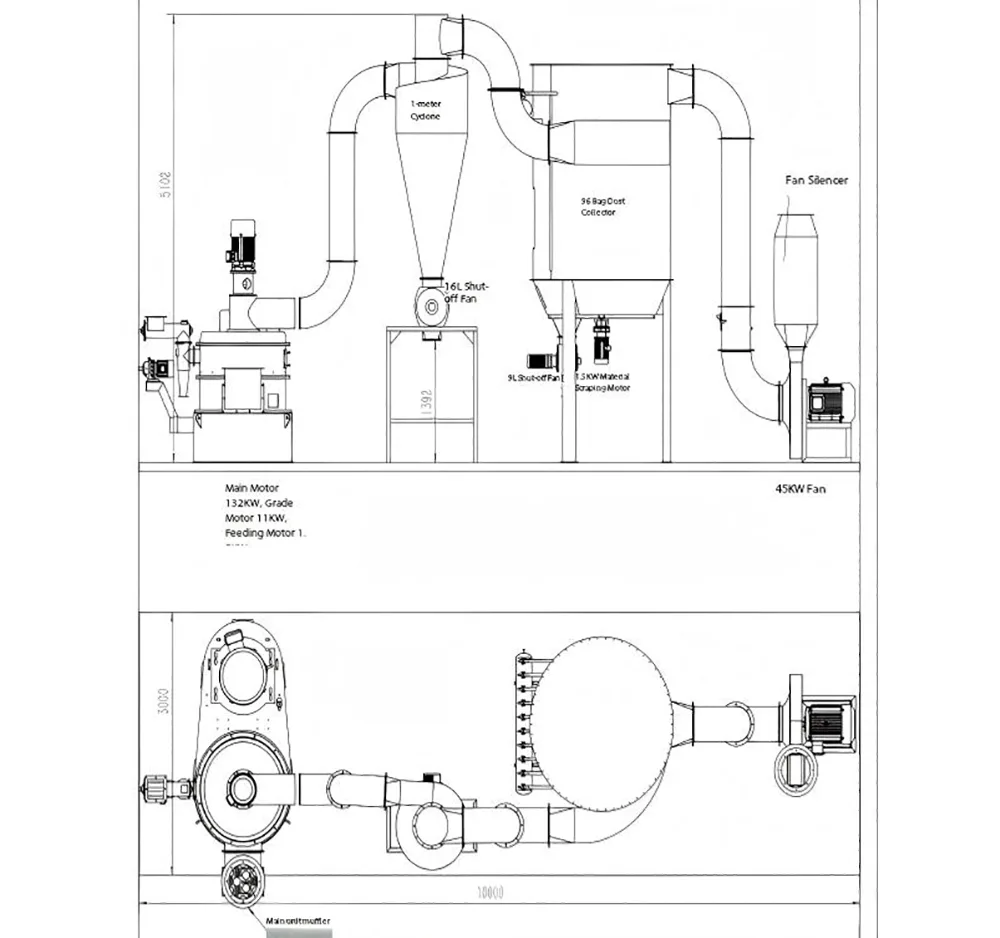Ultrahienohiomakoneisto koostuu syöttöjärjestelmästä, jauhatusjärjestelmästä ja lajittelujärjestelmästä. Materiaalien murskaus ja lajittelu suoritetaan samassa kammiossa.